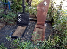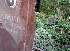 Вертикальный памятник из красного гранита было решено не трогать, и работы по его восстановлению проводились на установленном надгробье: мы восстановили надпись на памятнике и удалили образовавшийся на камне налёт.