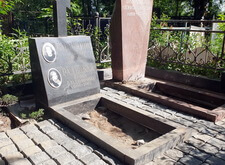 На фотографиях ниже видно промежуточное состояние места захоронения после укладки наземного покрытия и восстановления цветника.