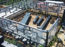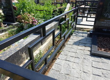 Перед нами стандартная могила, где уже захоронено два человека. Мы оставляем без изменения только ограду, ее мы только надежно зацементируем и покрасим. Все остальное мы изготовим и установим.