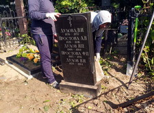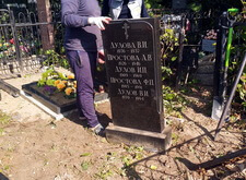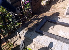 На данном объекте нам предстояло ровно установить покосившийся памятник, а вокруг цветника положить гранитную брусчатку.