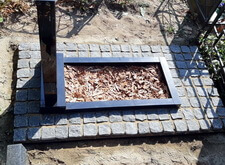 Небольшую могилу окаймляет гранитная брусчатка, что дополнительно придаёт месту захоронения ухоженный вид.