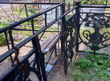 В данном заказе мы столкнулись со следующей проблемой: из металлического ограждения, опоясывавшего периметр участка, была украдена секция. Нижняя же часть ограждения практически полностью прогнила, а потому и остальные элементы узора грозили в скором времени банально выпасть.
