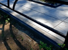 Далее мы покрыли участок бетонной плиткой, предварительно установив столик и лавочку.